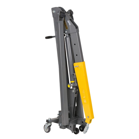 SIP folding engine crane provides superior lift up to 1 ton capacity. The crane arm features 3 pre-set positions of 1,000kg, 750kg and 500kg with a 2 speed hydraulic pump which can rotate to 135 degrees to ensure a optimal working position. The nylon wheels avoid damage to flooring while the unique base plate wheel provide great support. Made from heavy gauge square tubular steel, this folding engine crane includes dead man's control and a fine adjustment lowering handle. Winntec are an established and respected manufacturer, developer and supplier of quality, efficient and extremely reliable garage equipment - suitable for a vast range of applications.